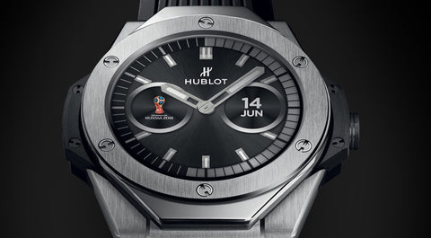 2018 means the FIFA World Cup™! For its 3rd participation as a Branded Licensee, Hublot has created the watch that all football fans and Hublot fans have been waiting for! A smart watch that will instantly connect you to every decisive second of the matches being played at the 2018 FIFA World Cup™. A much-anticipated innovation that could not have been imagined by any other watch brand, given the extent to which Hublot and Football are as one. Not only is the footballing world going to march to the beat of the watchmaker, but now the pulse of the matches will reach its peak on your wrist! And although you’ll have to wait 85 days for the start of the Competition, you can wear connected football on your wrist in just one month time!