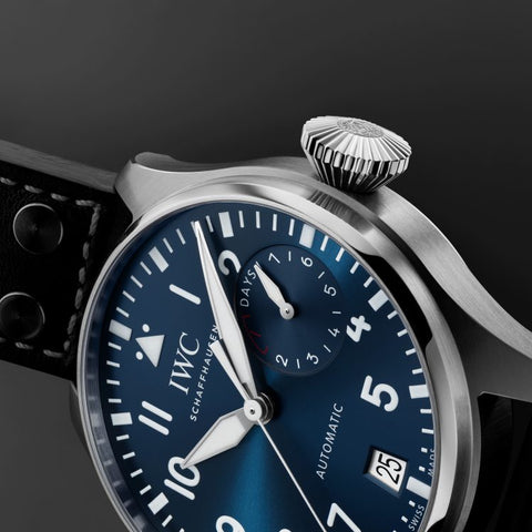 The striking conical crown of the Big Pilot´s Watch harks back to the pioneering days of aviation, when pilots had to face the elements in unheated cockpits. These watches had large crowns that were easy to grip so that they could be set and wound by a pilot wearing thick gloves.