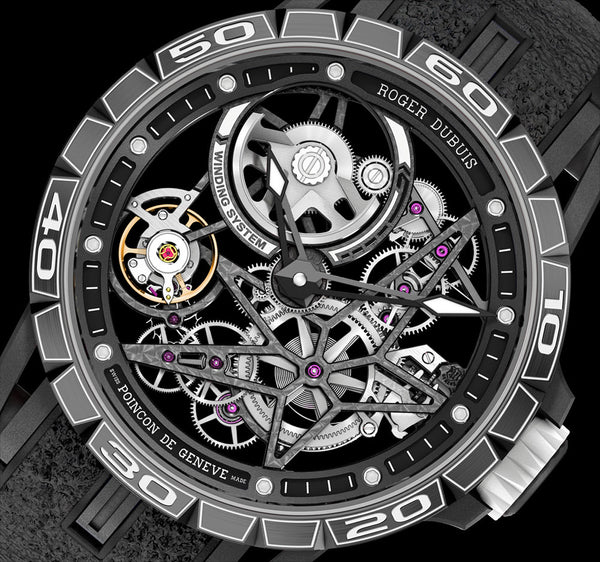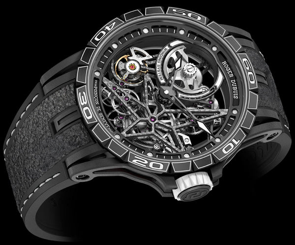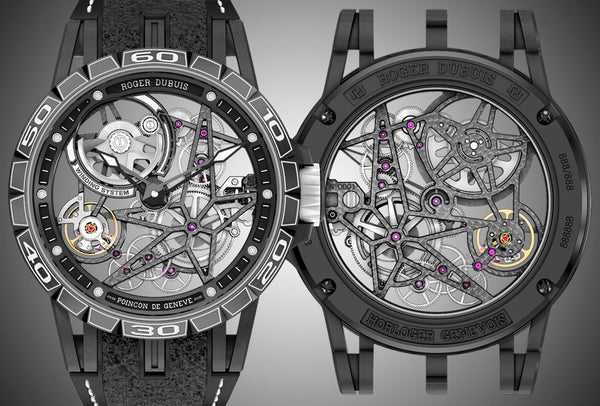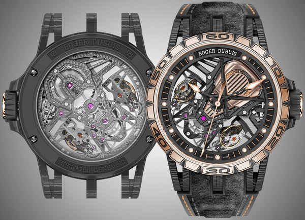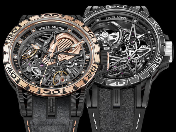 For their SIHH preview, Roger Dubuis, the brand known for innovative materials used on sporty and skeletonized watches, announced two new timepieces – the Roger Dubuis Excalibur Spider Pirelli and the Excalibur Aventador S. Both watches further extend the Excalibur line, stay true to the brand's penchant for skeletonization, and further the brand's new relationship with Lamborghini.